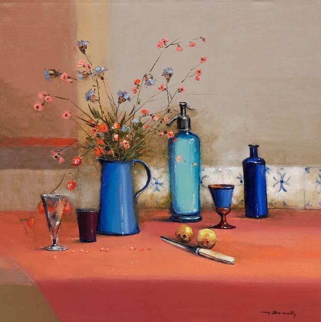 Une peinture qui cherche les transparences, une peinture qui aime les couleurs fortes. « Le sujet est un prétexte, dit-il. Ce que je préfère, c’est la lumière. » Pour ses natures mortes, il place sur une table des objets choisis qui ont une âme, un passé. Au fil des heures et au fil des jours, il admire les changements de lumières et d’ombres, qui transforment littéralement la composition.