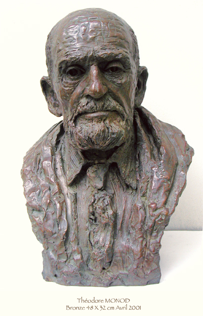 Les bustes alignés sur les étagères de Nacéra Kaïnou forment une étrange famille : le voyageur Paul-Emile Victor voisine le poète Arthur Rimbaud et l’écrivain Jean Cocteau, placés juste en dessous de la figure imposante du père de l’artiste et d’une multitude de visages anonymes. Réveillés par la lumière matinale qui traverse la grande verrière de l’atelier, les regards de ces visages de bronze et d’argile dégagent tous la même force et intensité.]