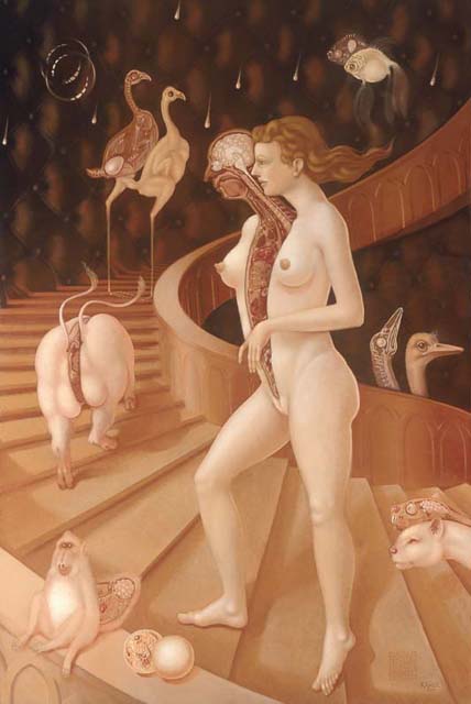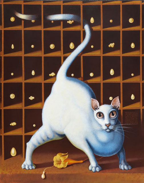 Ma peinture se situe quelque part entre le surréalisme et le fantastique, entre l’étrange et le magique.