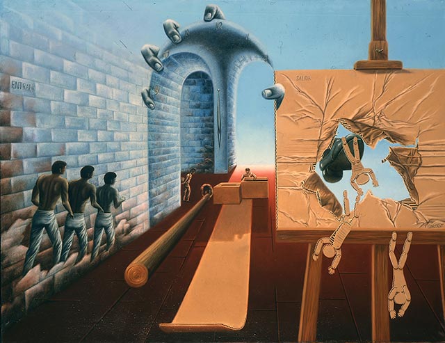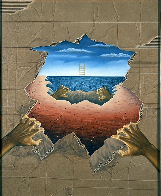 L'amour, la passion, la violence, le destin de l'humanité au cours duquel les uns et les autres se détruisent quotidiennement, sont des messages appréhendés par OKENDO, qui les interprète et convertit en peintures d'une force et d'une netteté admirables.