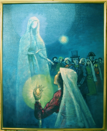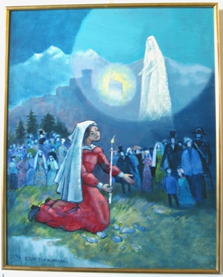 Mais personne n’est dupe du caractère spirituel qu’elles dégagent. Il n’est donc pas étonnant qu’en 1979 il participe à la biennale internationale de l’Art Sacré. Il se lance ensuite dans des réalisations en gemmail, un art du vitrail qu’il pratiquera pour des compositions destinées à diverses églises dont la basilique Saint Pie X à Lourdes où 20 gemmaux « Les Apparitions » ont étés exécutés d’après ses œuvres entre 1989 et 1993.